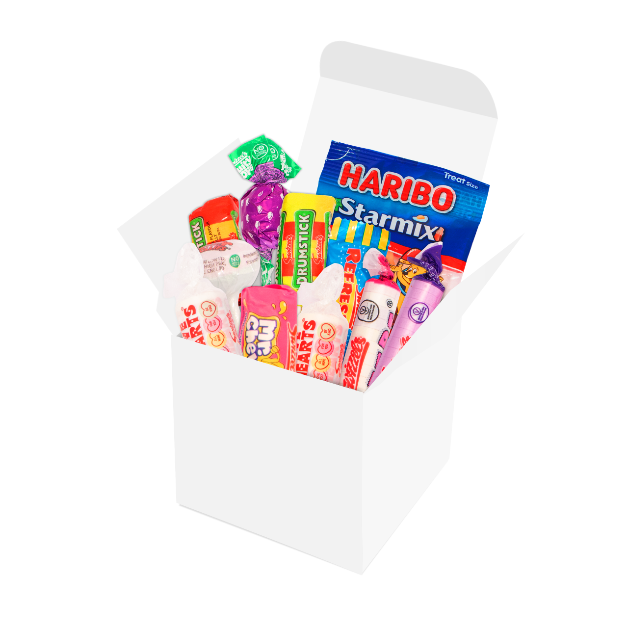 Packed with a generous mix of Swizzels favourites (including Love Hearts, Refreshers, Drumsticks and more), Haribo mini treat bags, and other classic confections!